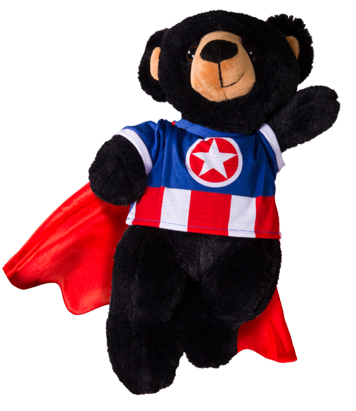 Our A”Bear” ican Hero Tee w/ cape (16″) T-Shirt will fit 16 inch stuffable build your own bear, animal,or doll. Perfect for your little super hero!